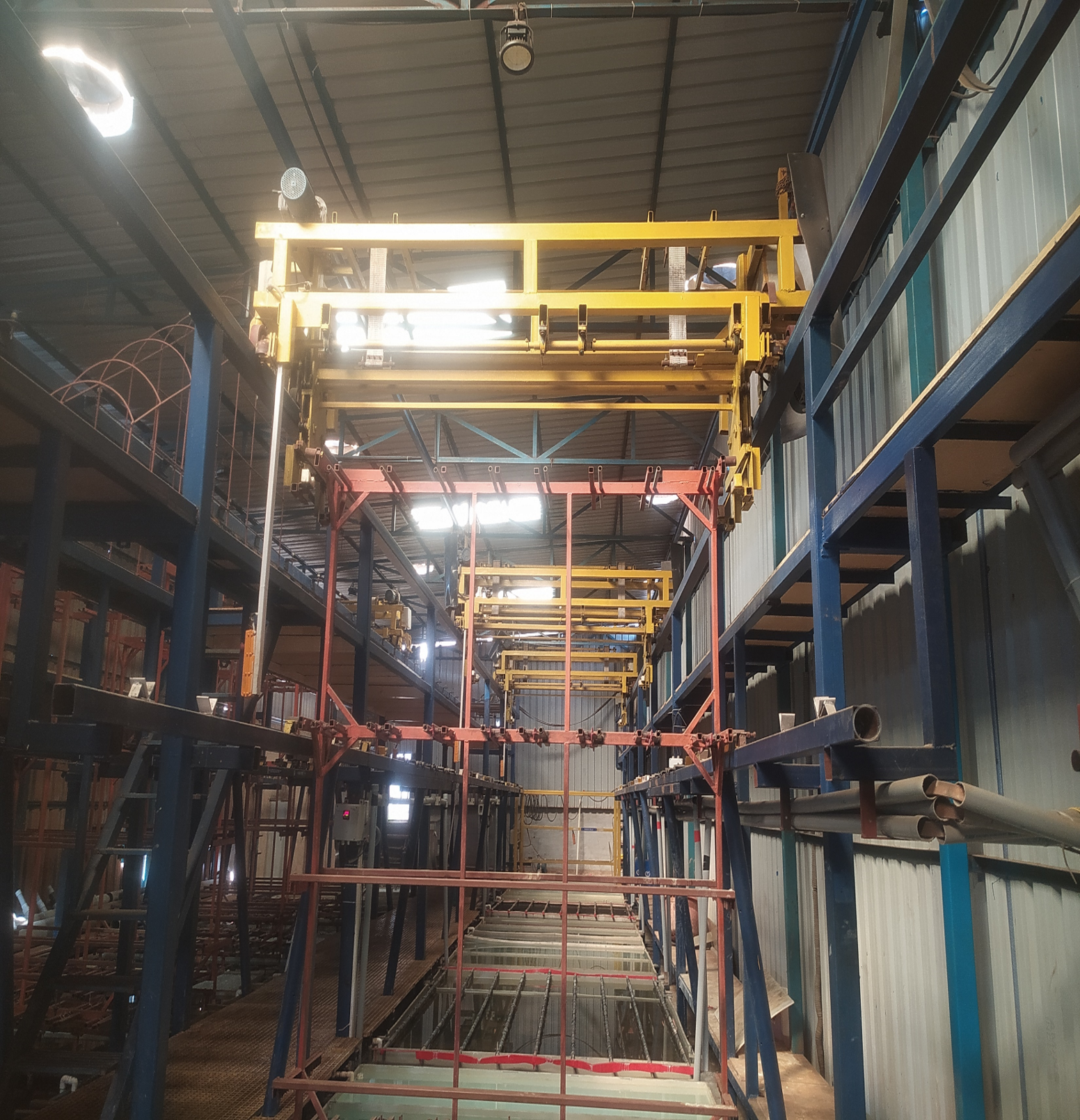 An electroplating plant is a manufacturing facility where thin layers of metal are applied to other materials using an electrochemical process.